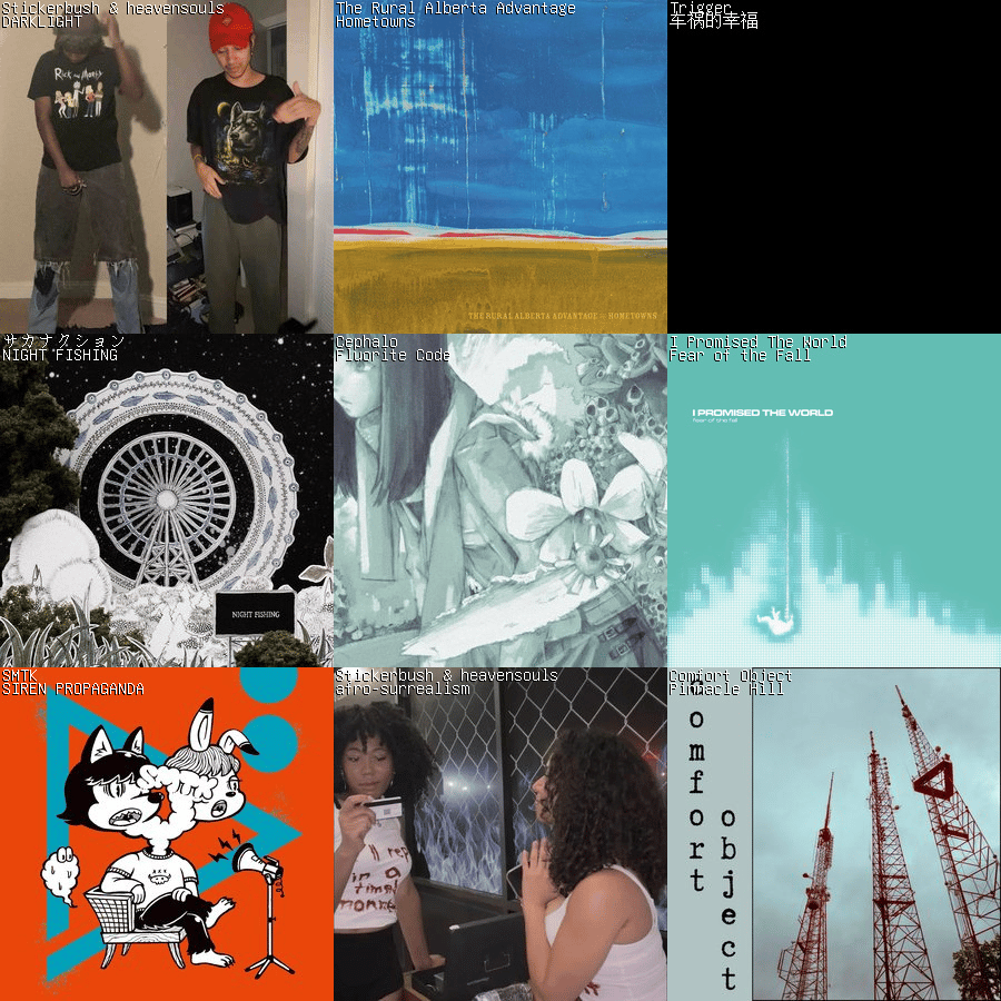 stickerbush and heavensouls - afro-surrealism - Standout glitch-hop EP from my most listened to artist this week. I am probably going to be digging through their discography together for weeks to come just to see the upper bounds of what they have to offer as such detailed collaborators.
